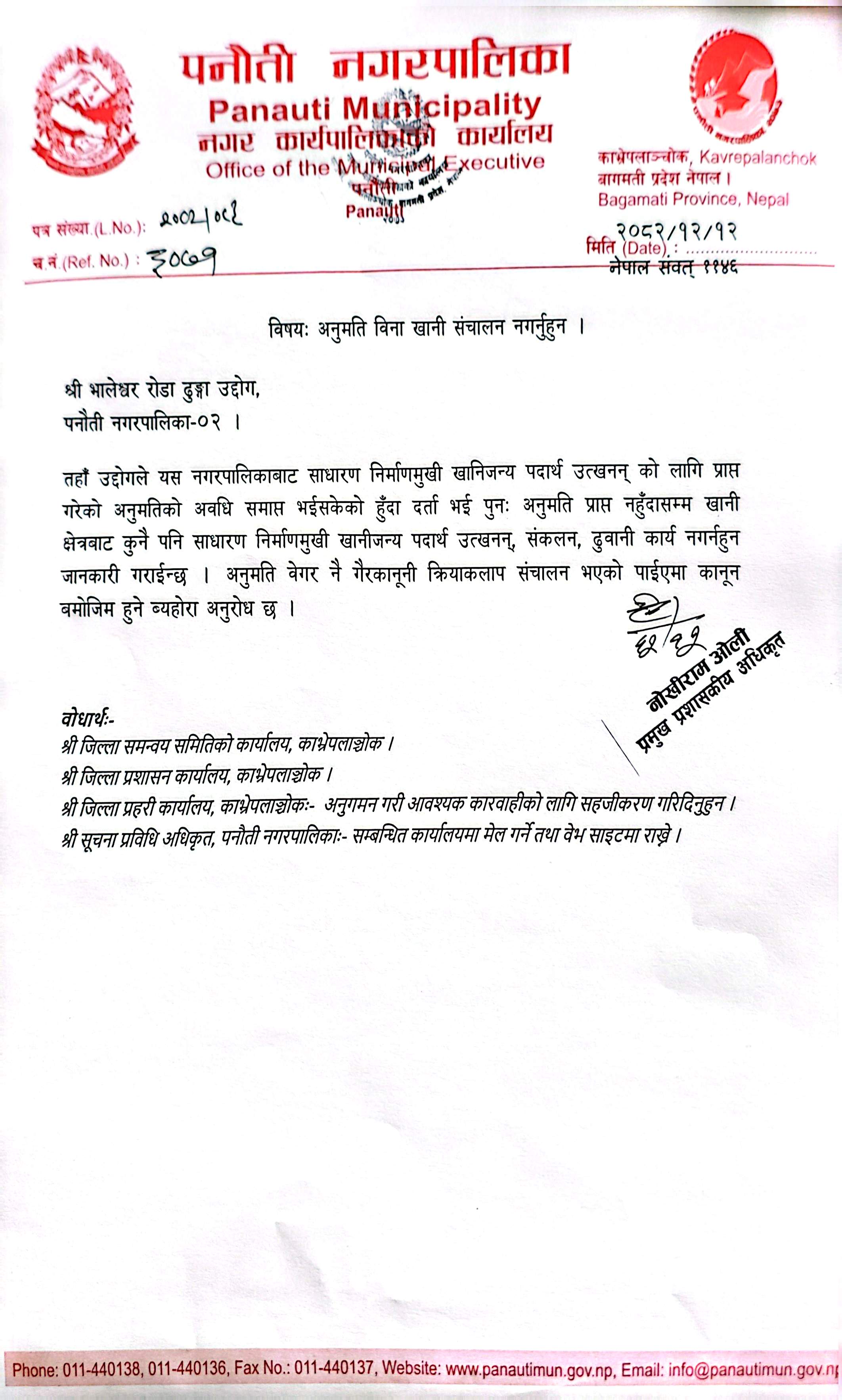 अनुमति बिना खानी संचालन नगर्नुहुन बारे