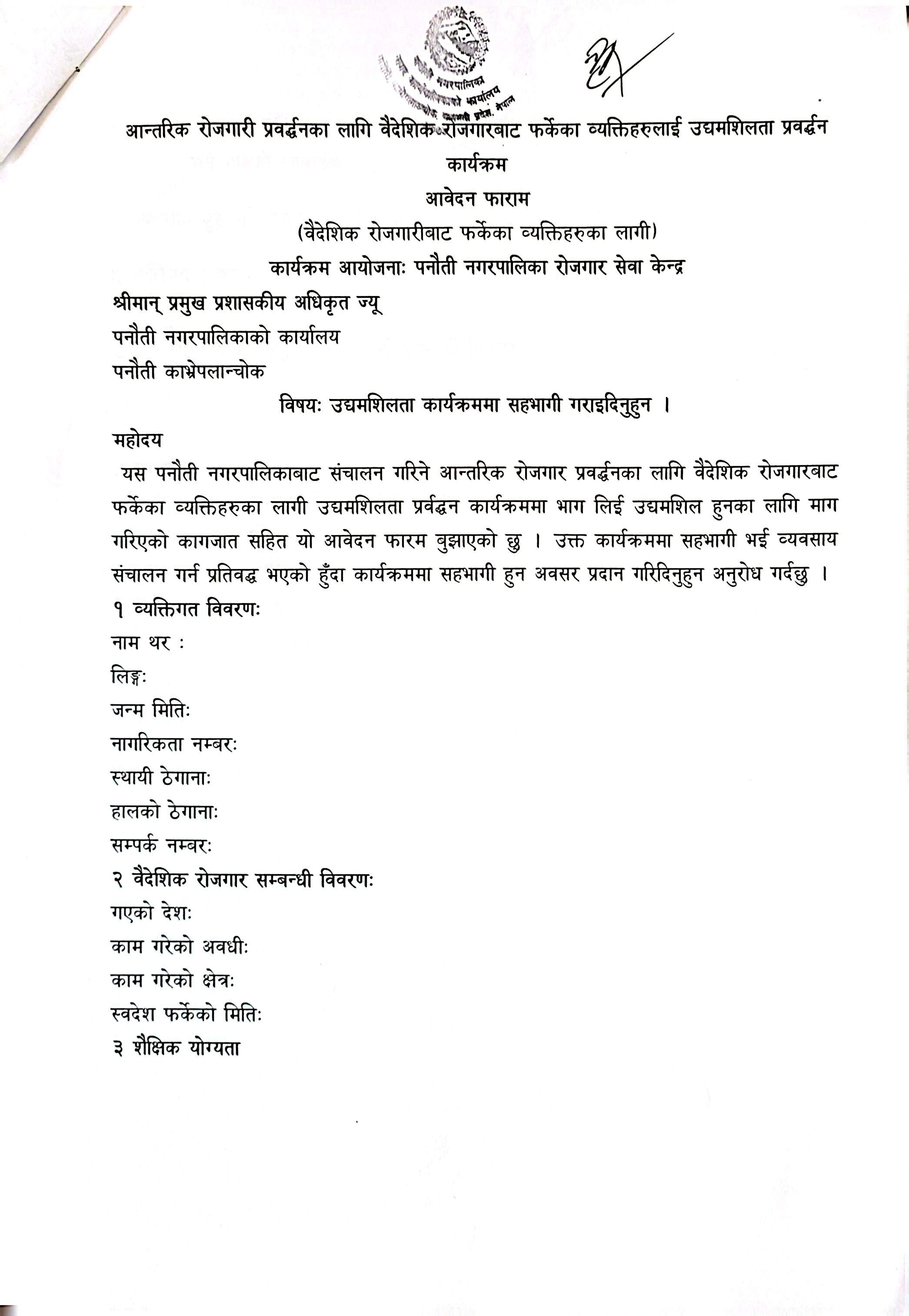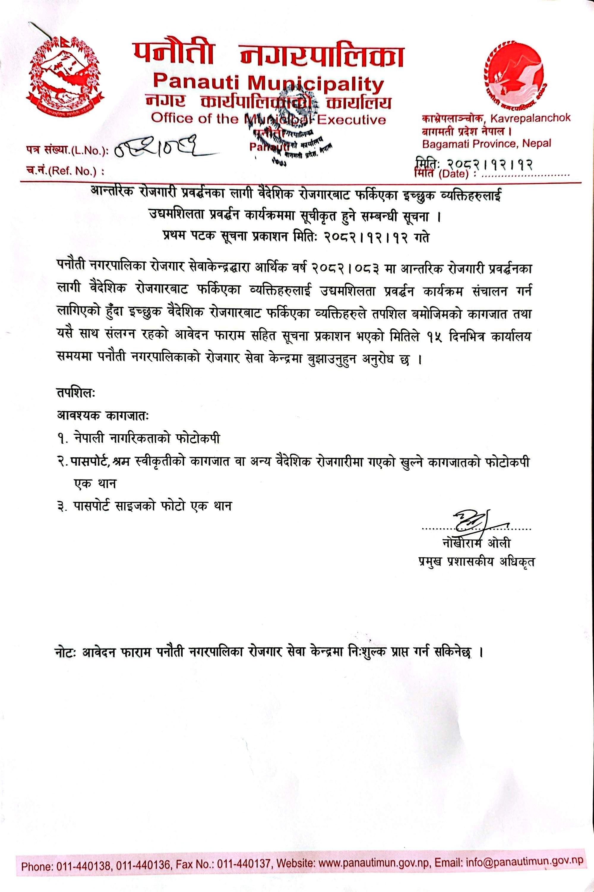 » आन्तरिक रोजगारी प्रवर्द्धनका लागी वैदेशिक रोजगारबाट फर्किएका इच्छुक व्यक्तिहरुलाई उद्यमशीलता प्रवर्द्धन कार्यकममा सूचीकृत हुने सम्बन्धी सूचना