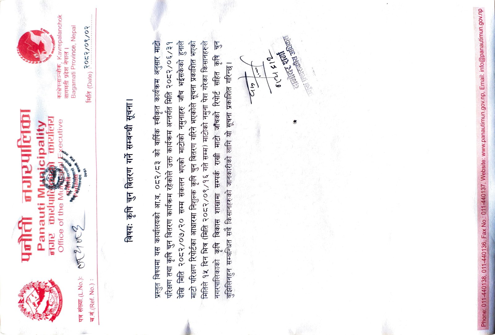 कृषि चुन वितरण गर्ने सम्बन्धी सूचना ।