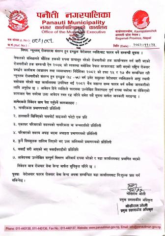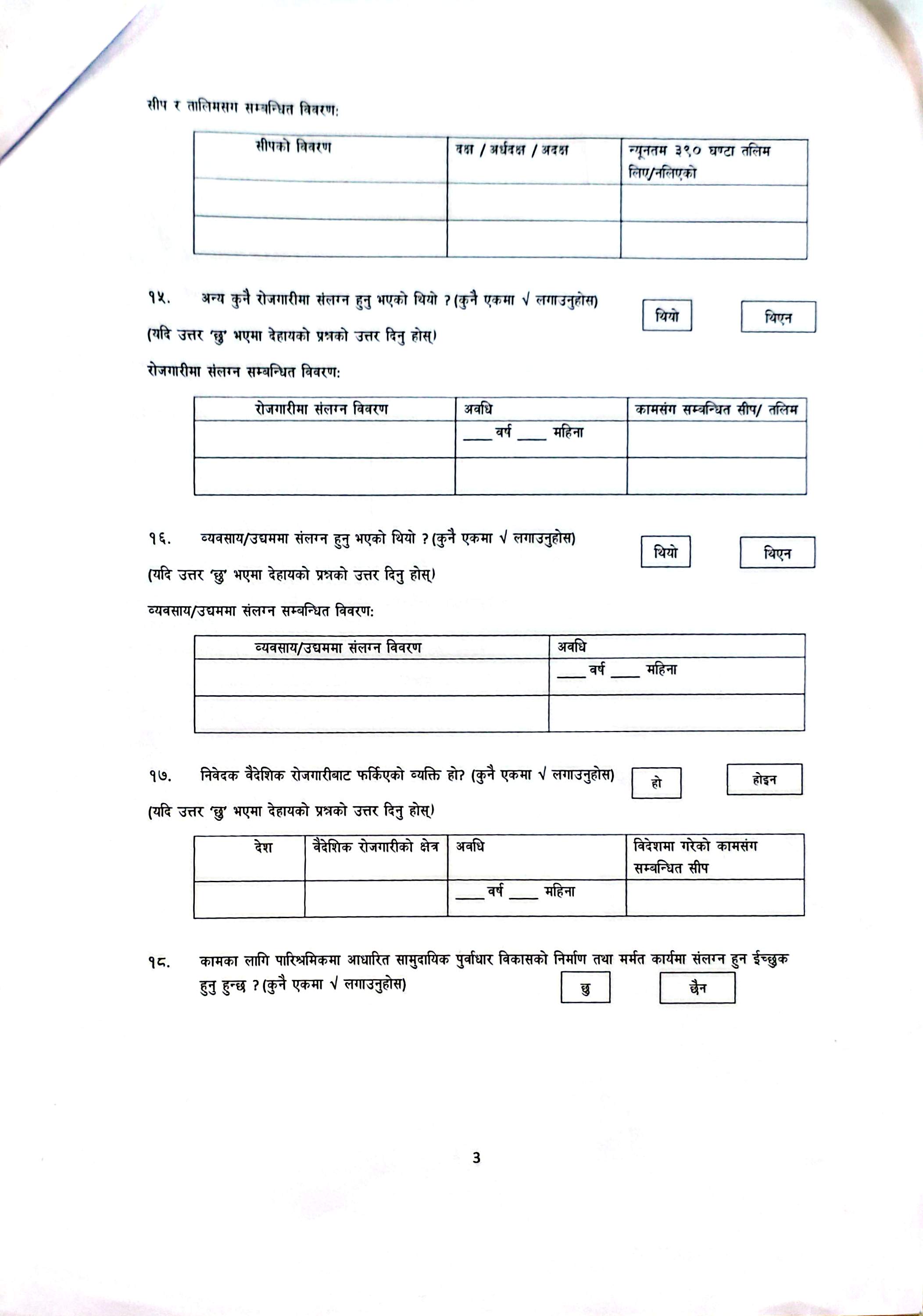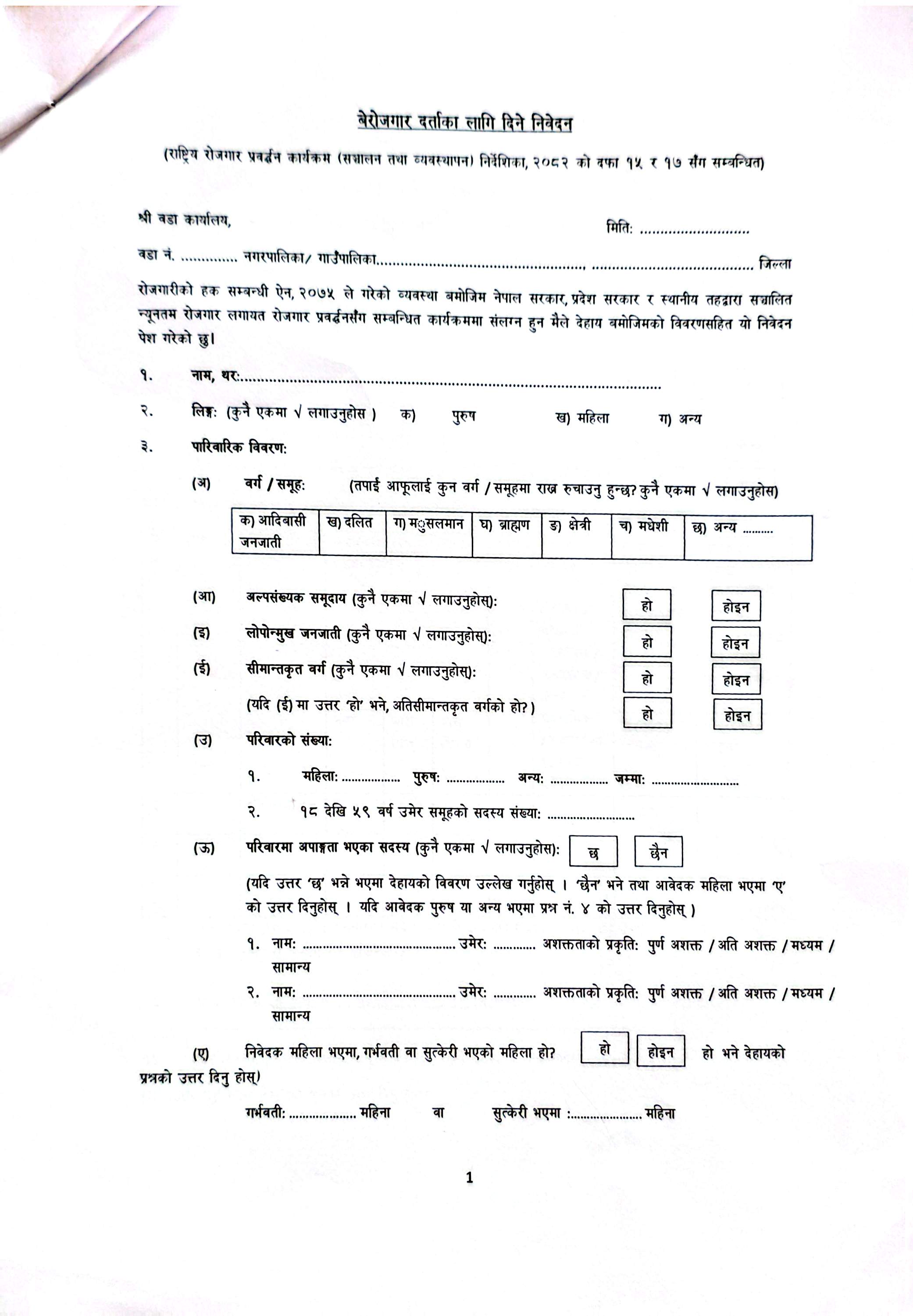 न्यूनतम् रोजगारमा संलग्न हुन इच्छुक बेरोजगार व्यक्तिबाट फारम भर्नें सम्बन्धी सूचना