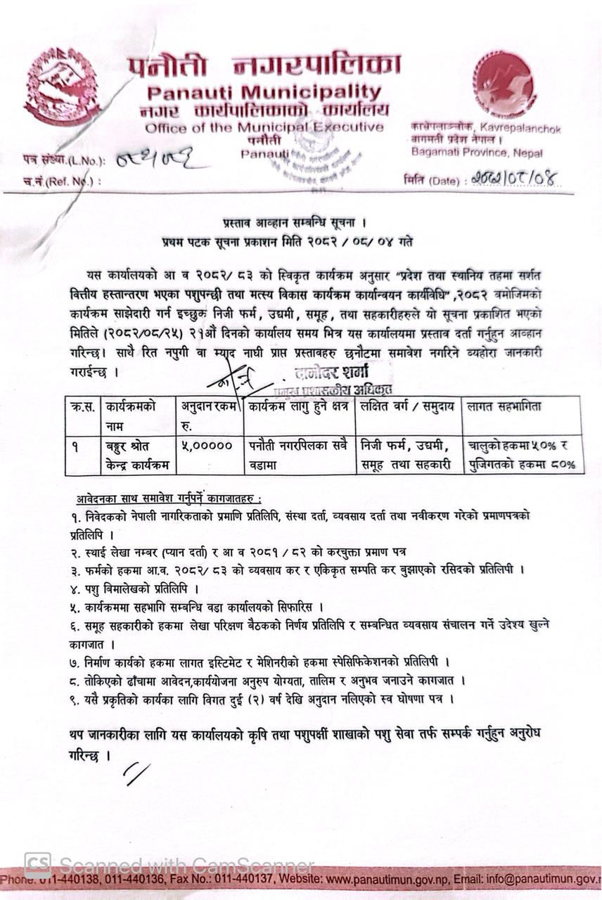 » बंगुर श्रोत केन्द्र कार्यक्रमको प्रस्ताव आव्हान गरिएको सूचना ।
