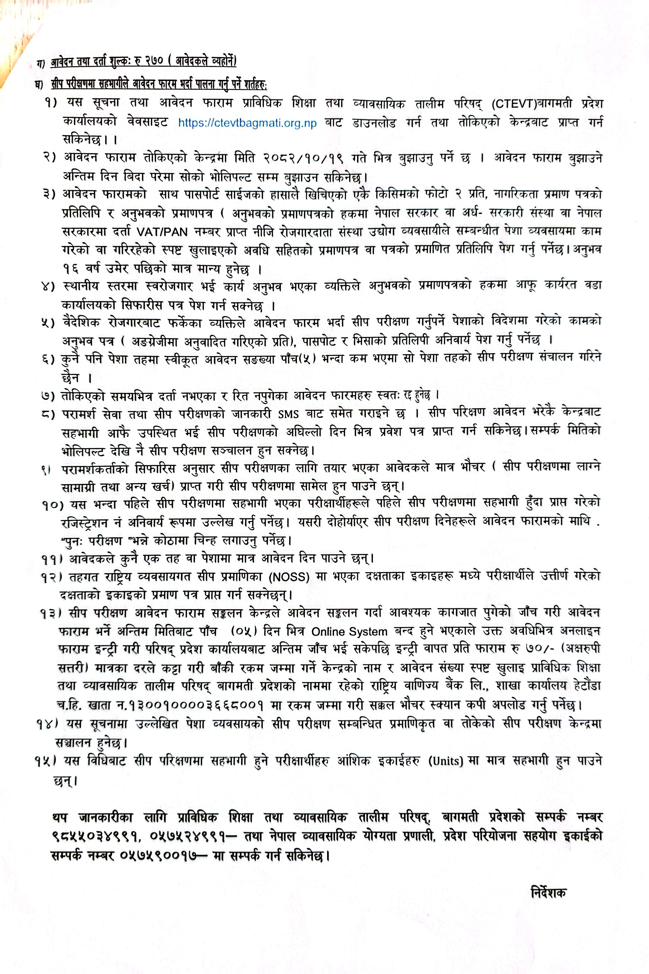 विभिन्न सीप भएका वा सीपमूलक तालिम लिएका तर हालसम्म CTEVT (Council for Trechnical Education and Vocational Training) प्राविधिक शिक्षा तथा व्यवसायिक तालिम परिषद बाट सीप परिक्षण नगरेका व्यक्तिहरुका लागि सीप परीक्षण कार्यक्रम सन्चालन गर्ने बारे सूचना