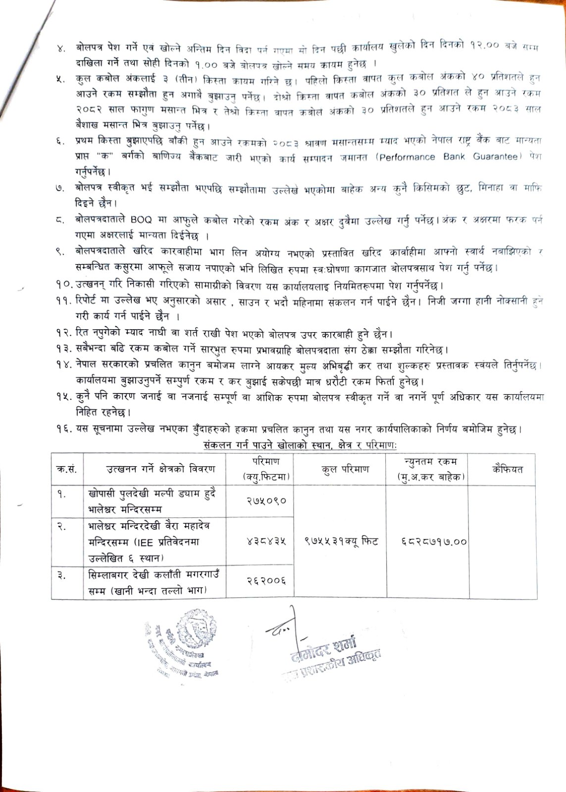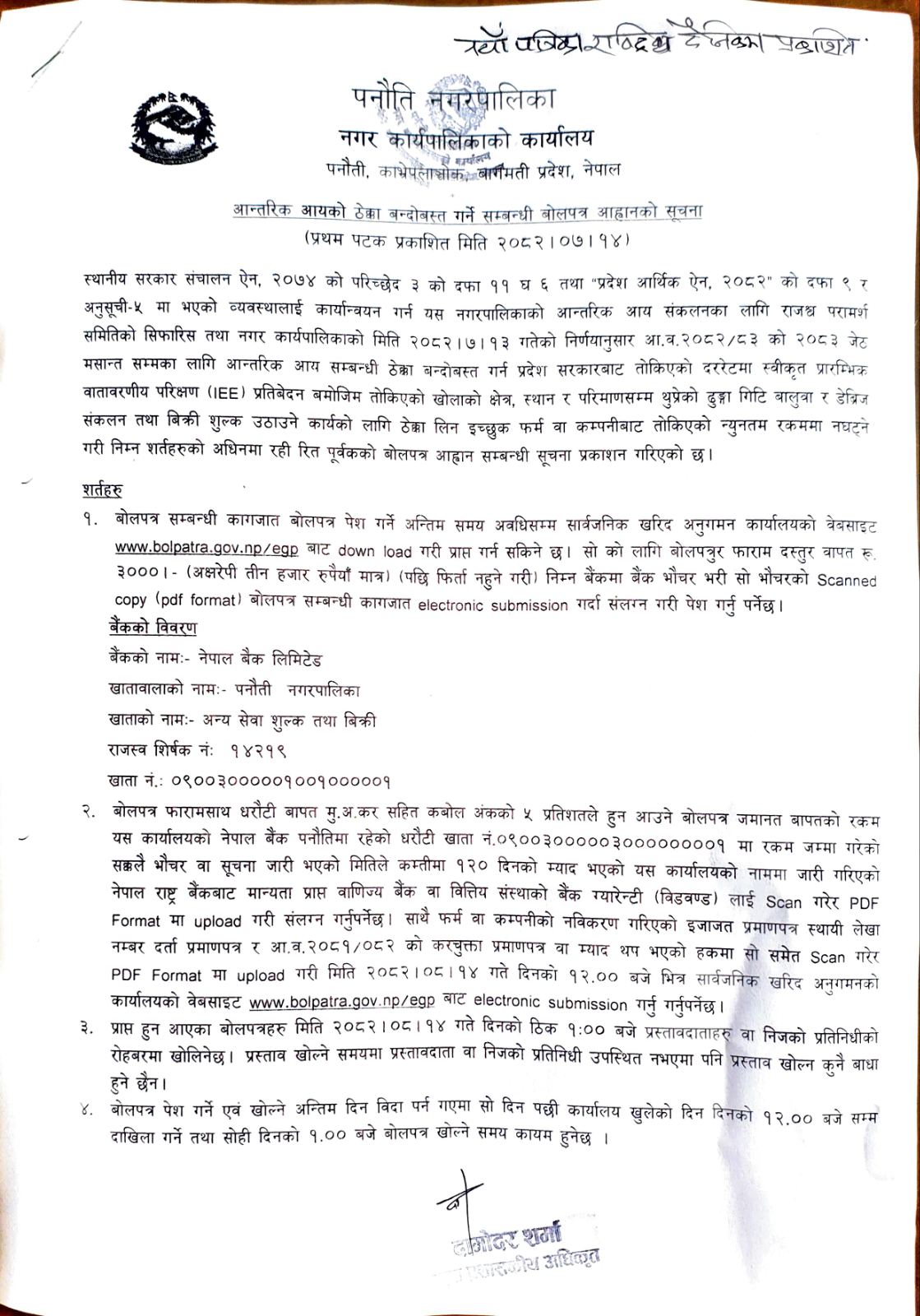 आन्तरिक आयको ठेक्का बन्दोबस्त गर्ने सम्बन्धी बोलपत्र आव्ह्रानको सूचना ।