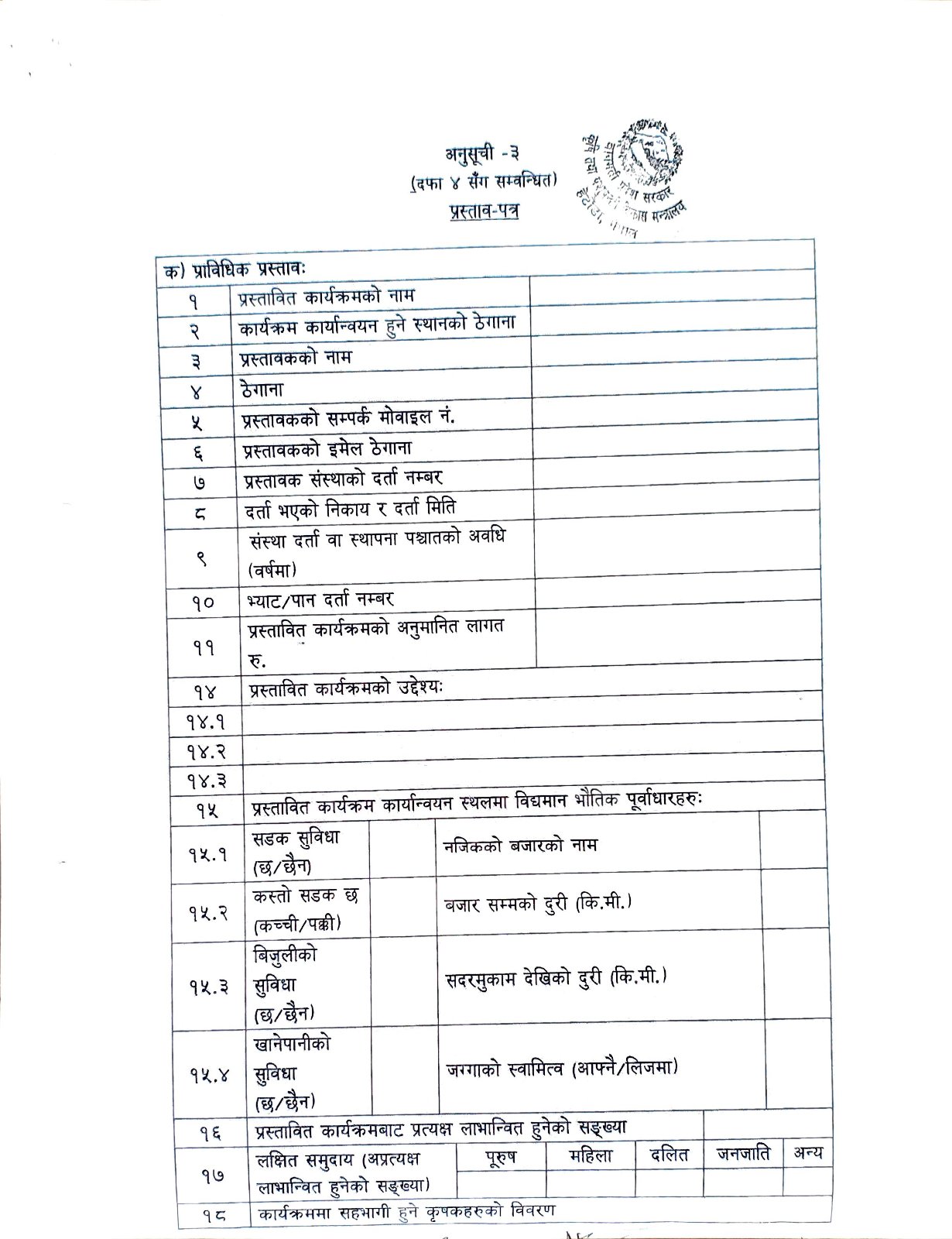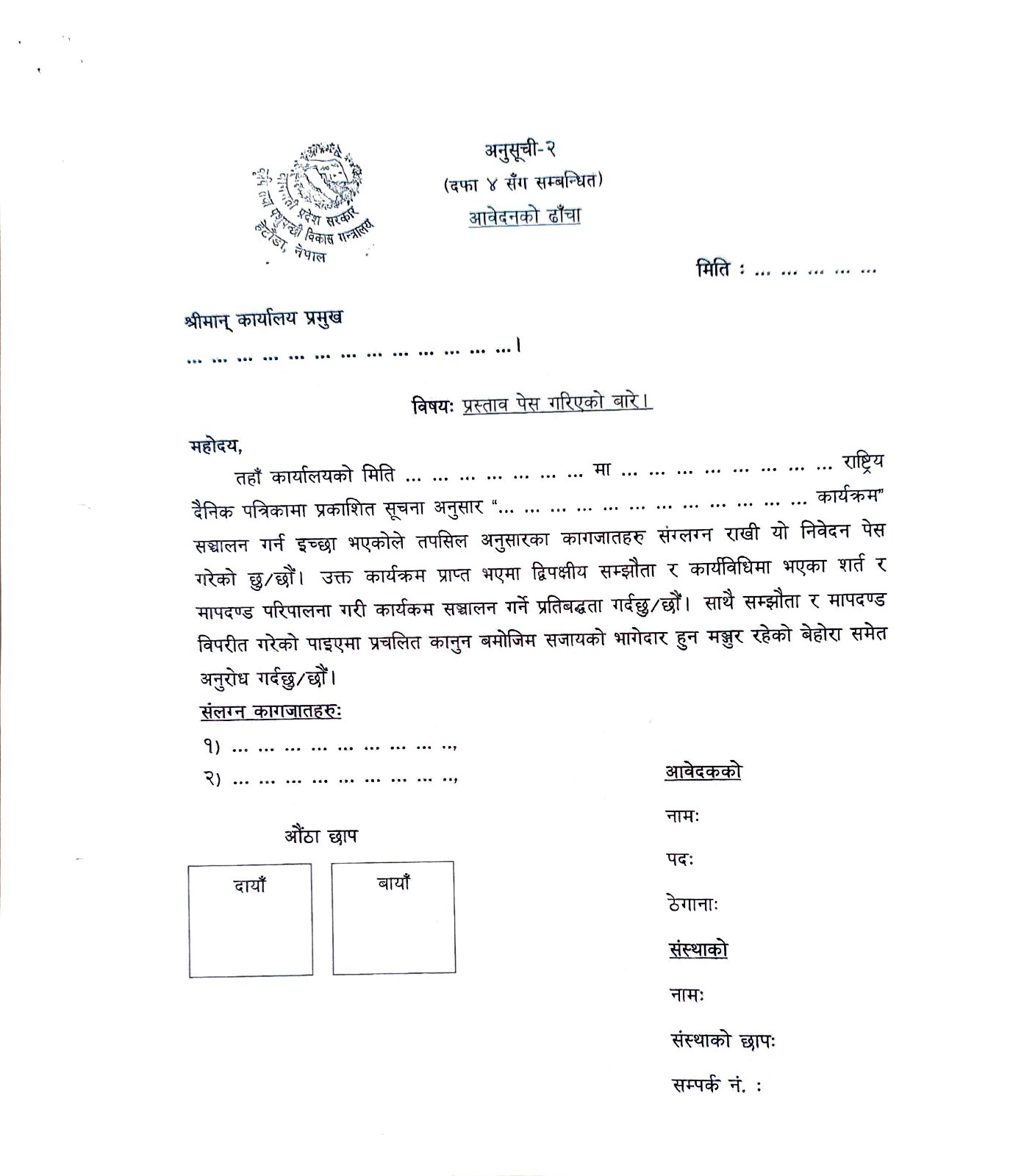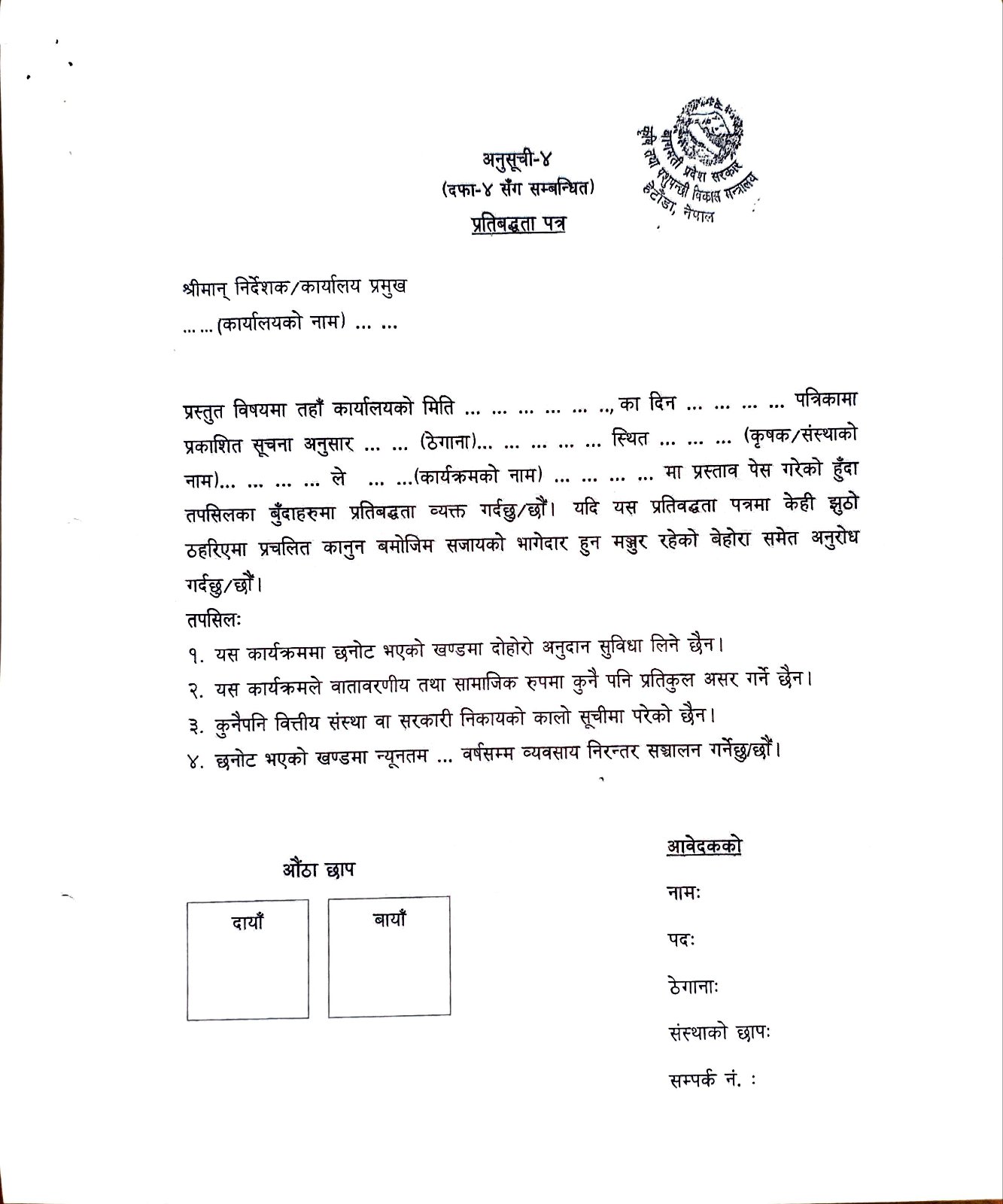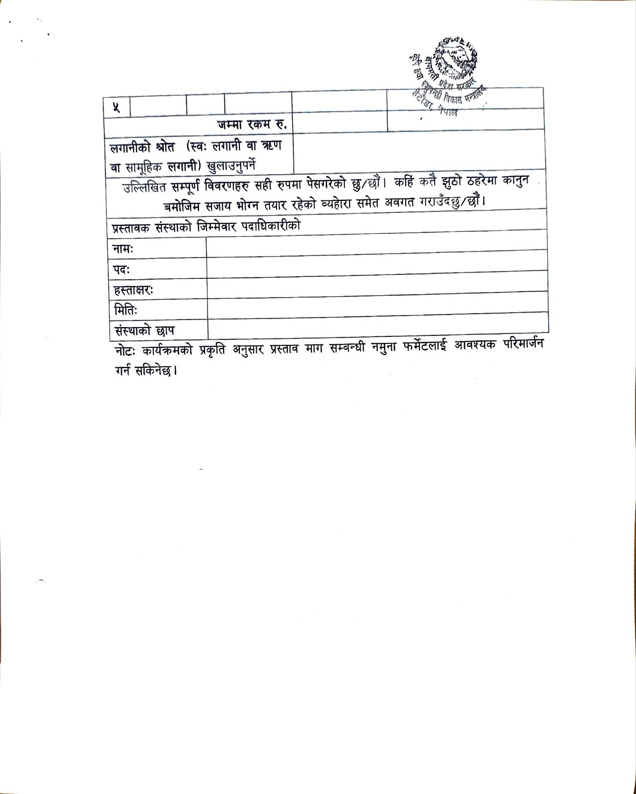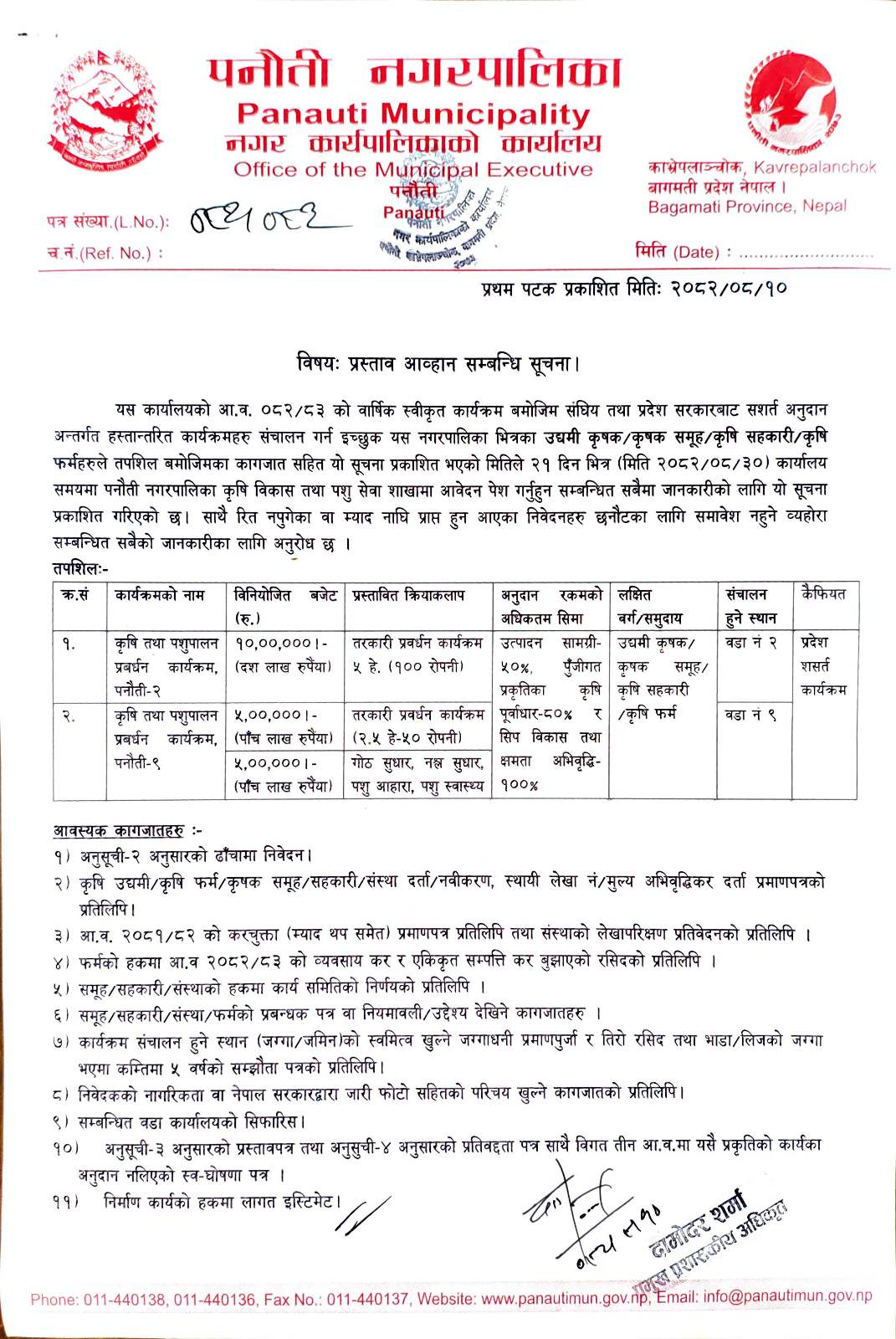 कृषि तथा पशुपालन प्रवर्धन कार्यक्रमको लागि प्रस्ताव आव्हान सम्बन्धि सूचना ।