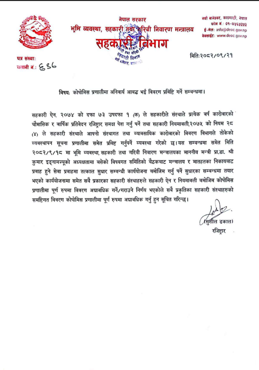 » कोपोमिस प्रणालीमा अनिवार्य आवद्ध भई विवरण प्रविष्टि गर्नें सम्बन्धमा।
