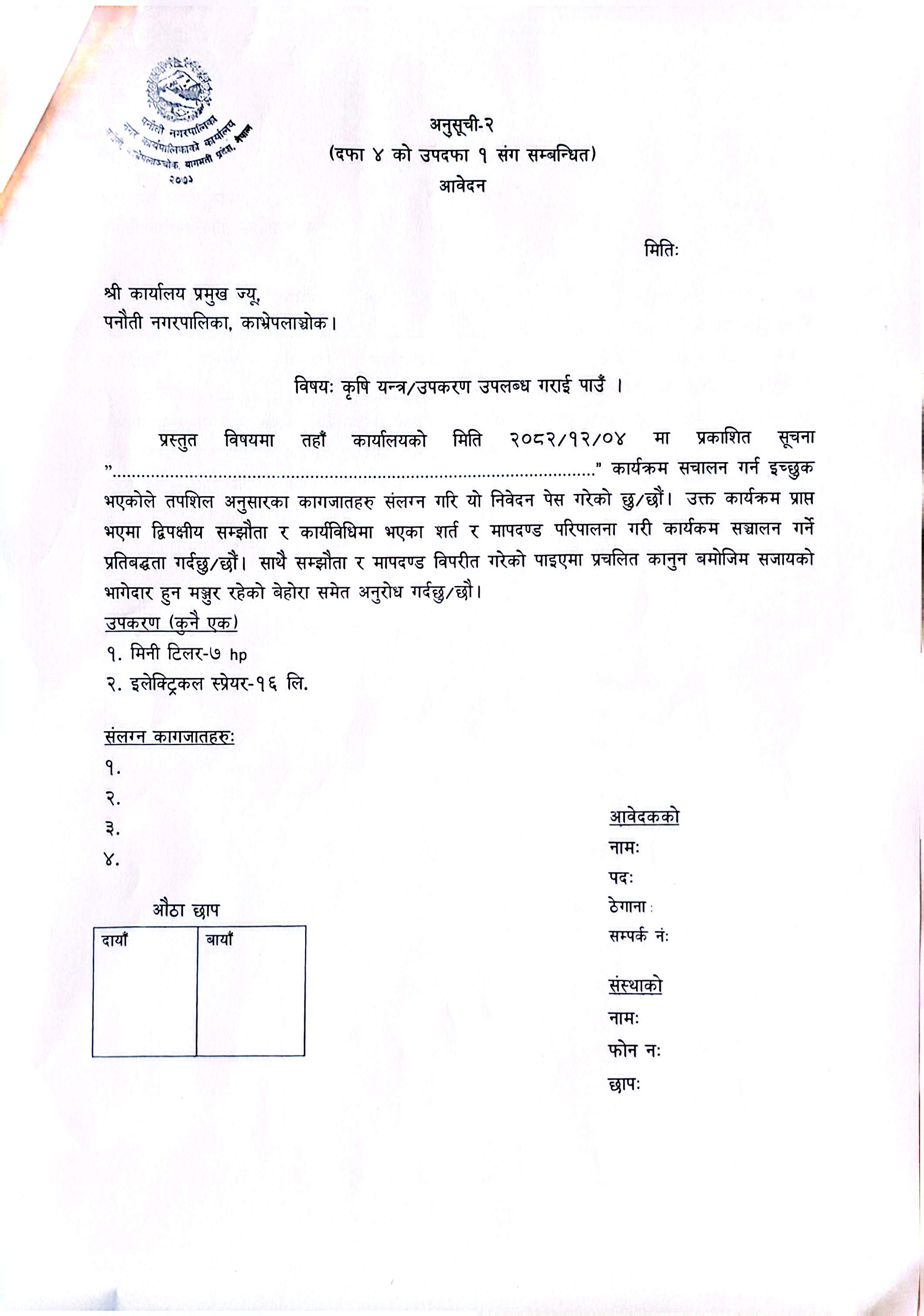 पकेट विकास कार्यक्रम अन्तर्गत प्रस्तावित यन्त्र/उपकरण माग गर्ने सम्बन्धि सूचना
