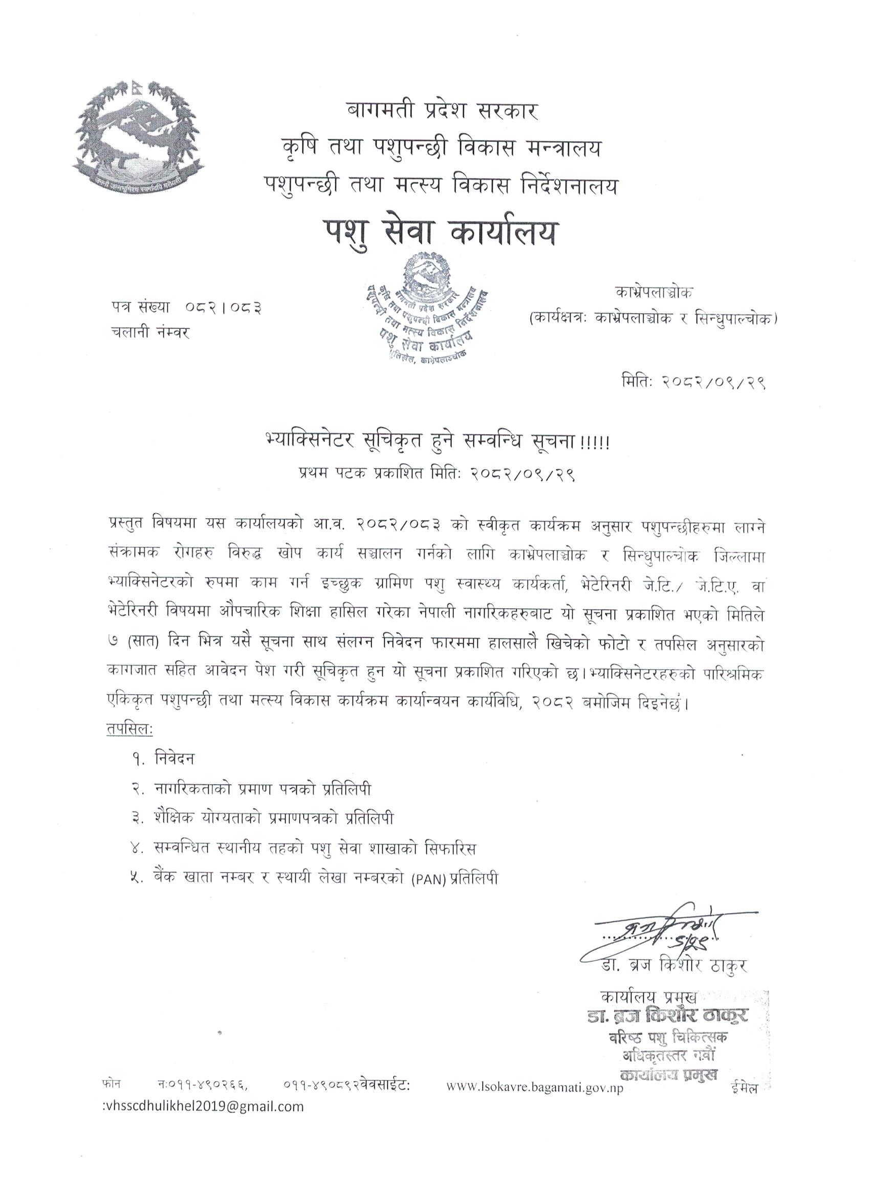 भ्याक्सिनेटर सूचिकृत हुने सम्वन्धि सूचना