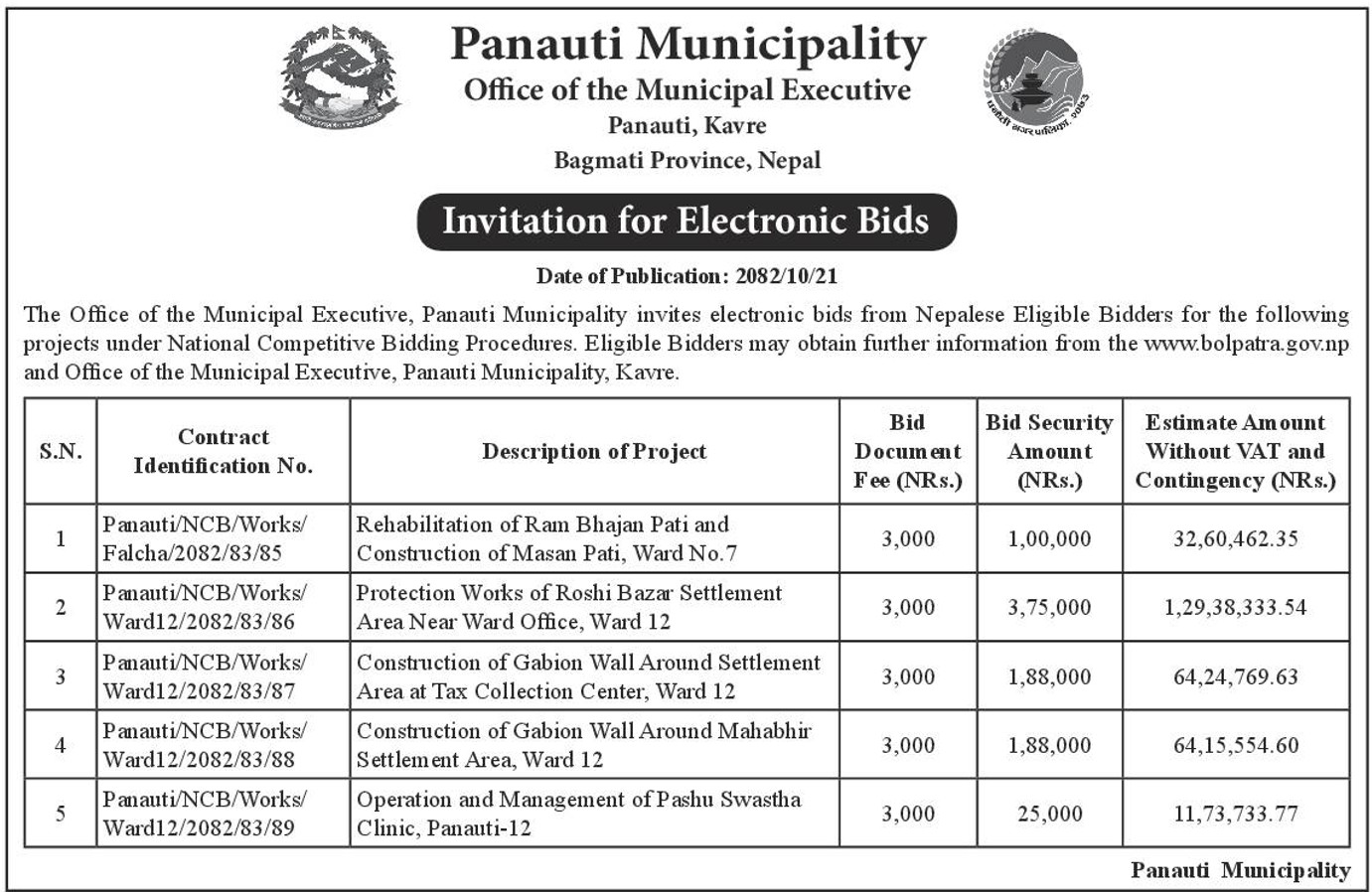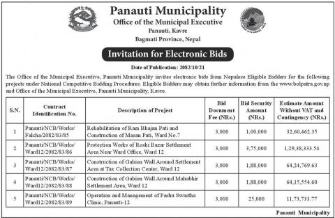 » मिति २०८२/१०/२१ गते राजधानी पत्रिकामा प्रकाशित बोलपत्र आह्वान सम्बन्धी सूचना