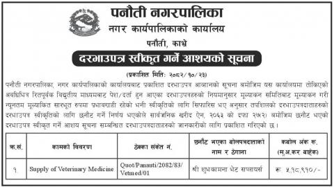 मिति २०८२/१०/२३ गते राजधानी पत्रिकामा प्रकाशित बोलपत्र स्वीकृत गर्ने आशयको सूचना
