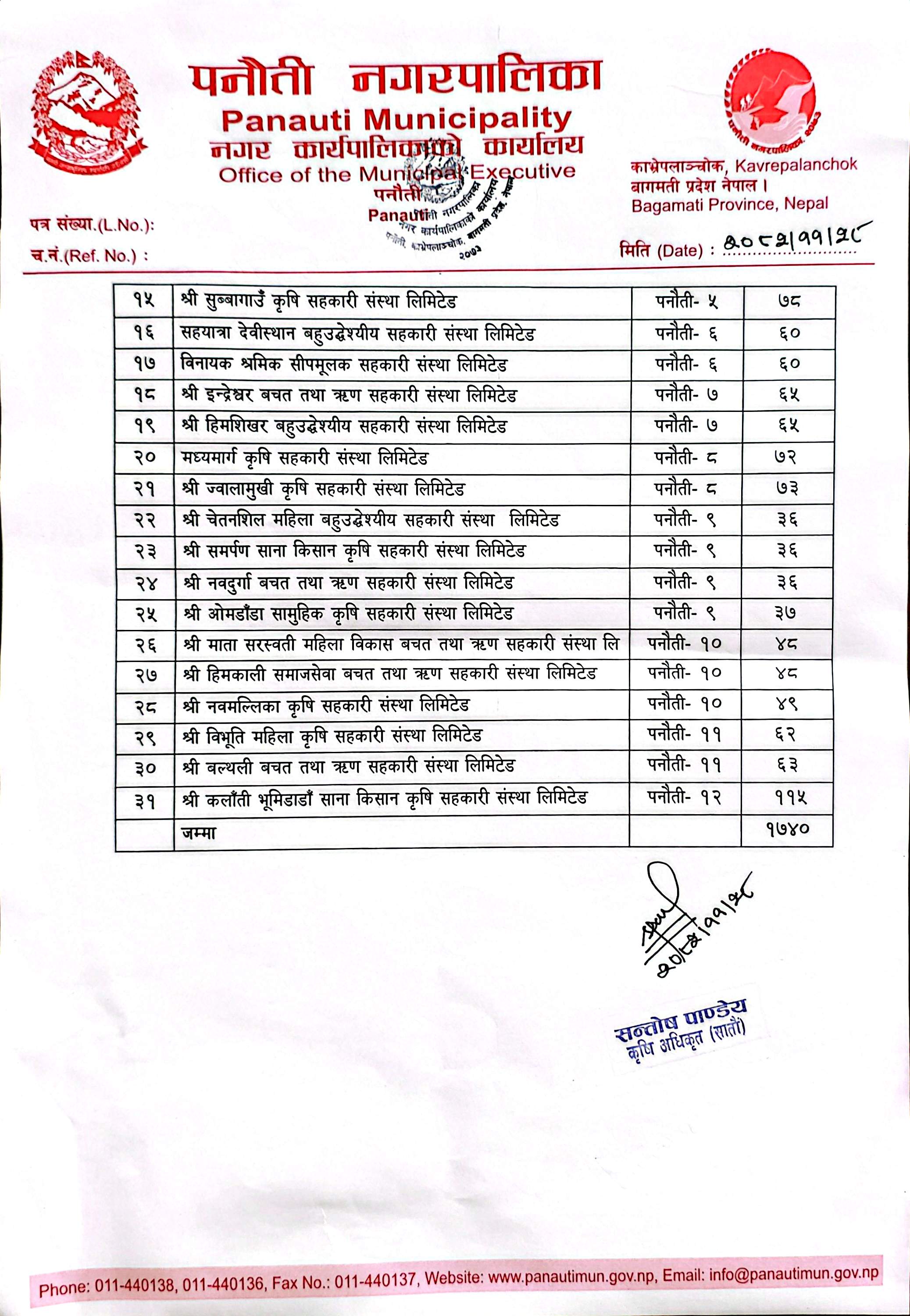 पनौती नगरपालिका ,नगरकार्यपालिकाको कार्यालय