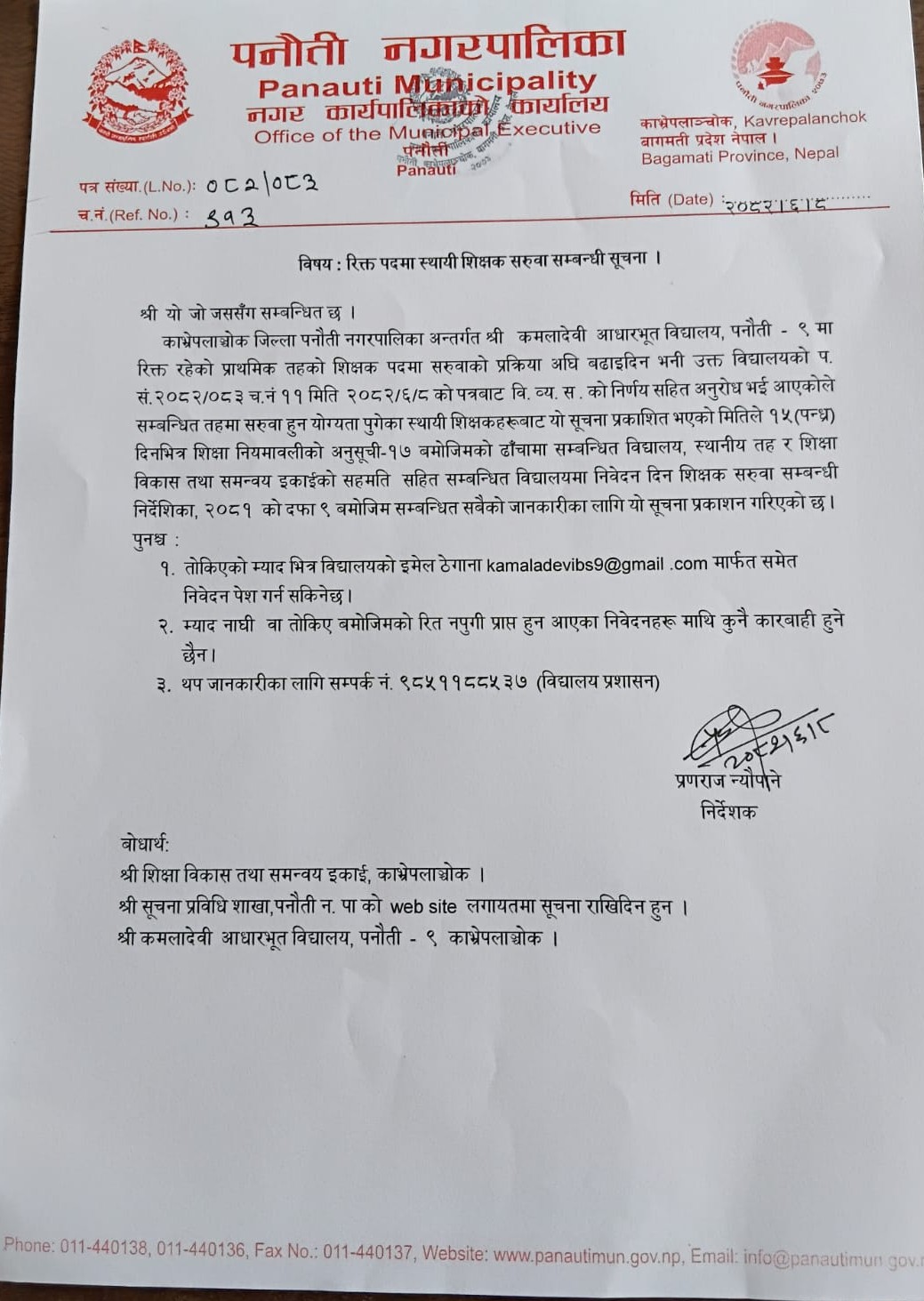 पनौती नगरपालिका ,नगरकार्यपालिकाको कार्यालय