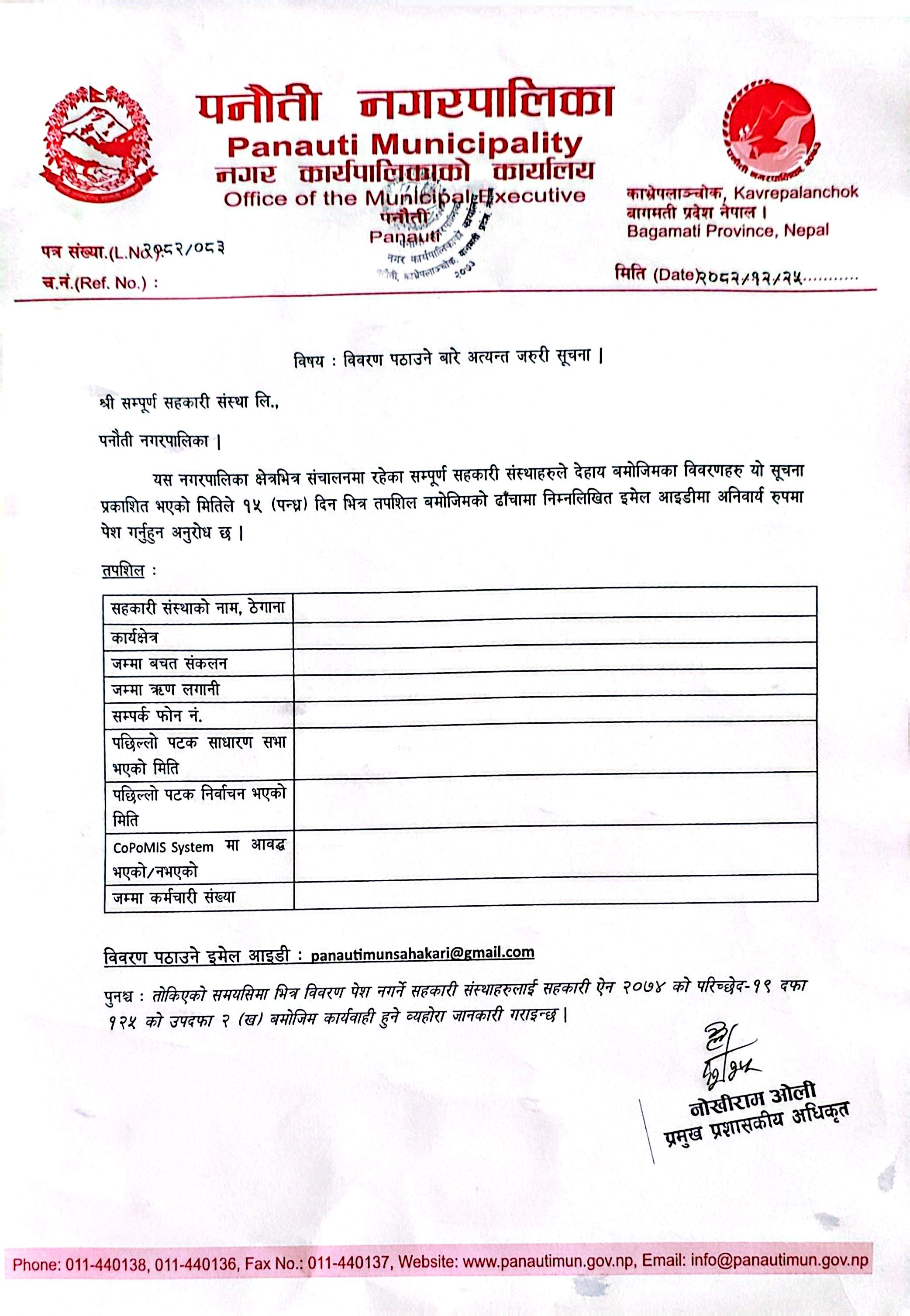 विवरण पठाउने बारे अत्यन्त जरुरी सूचना