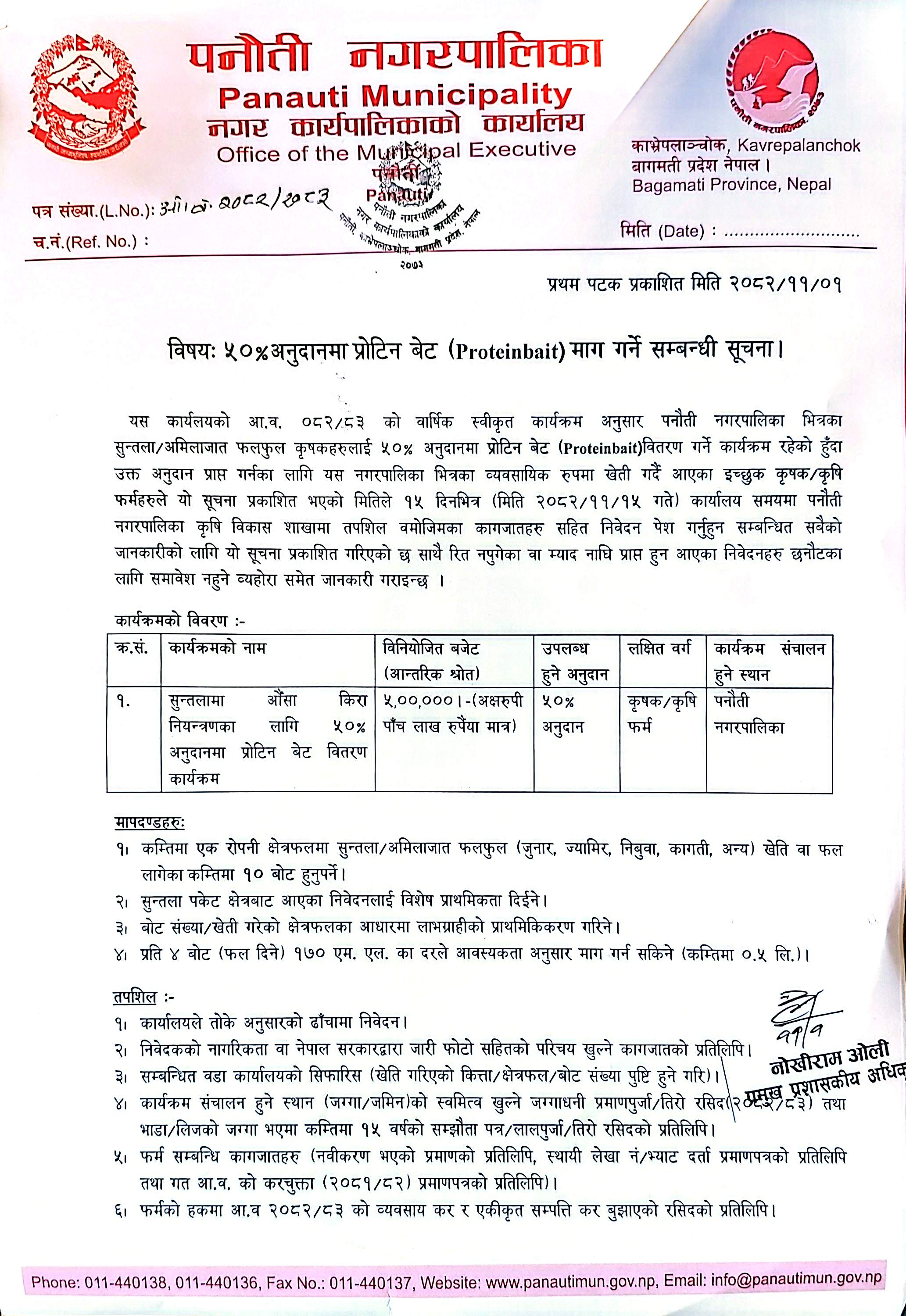 ५०% अनुदानमा प्रोटिन बेट (Proteinbait) माग गर्ने सम्बन्धी सूचना।