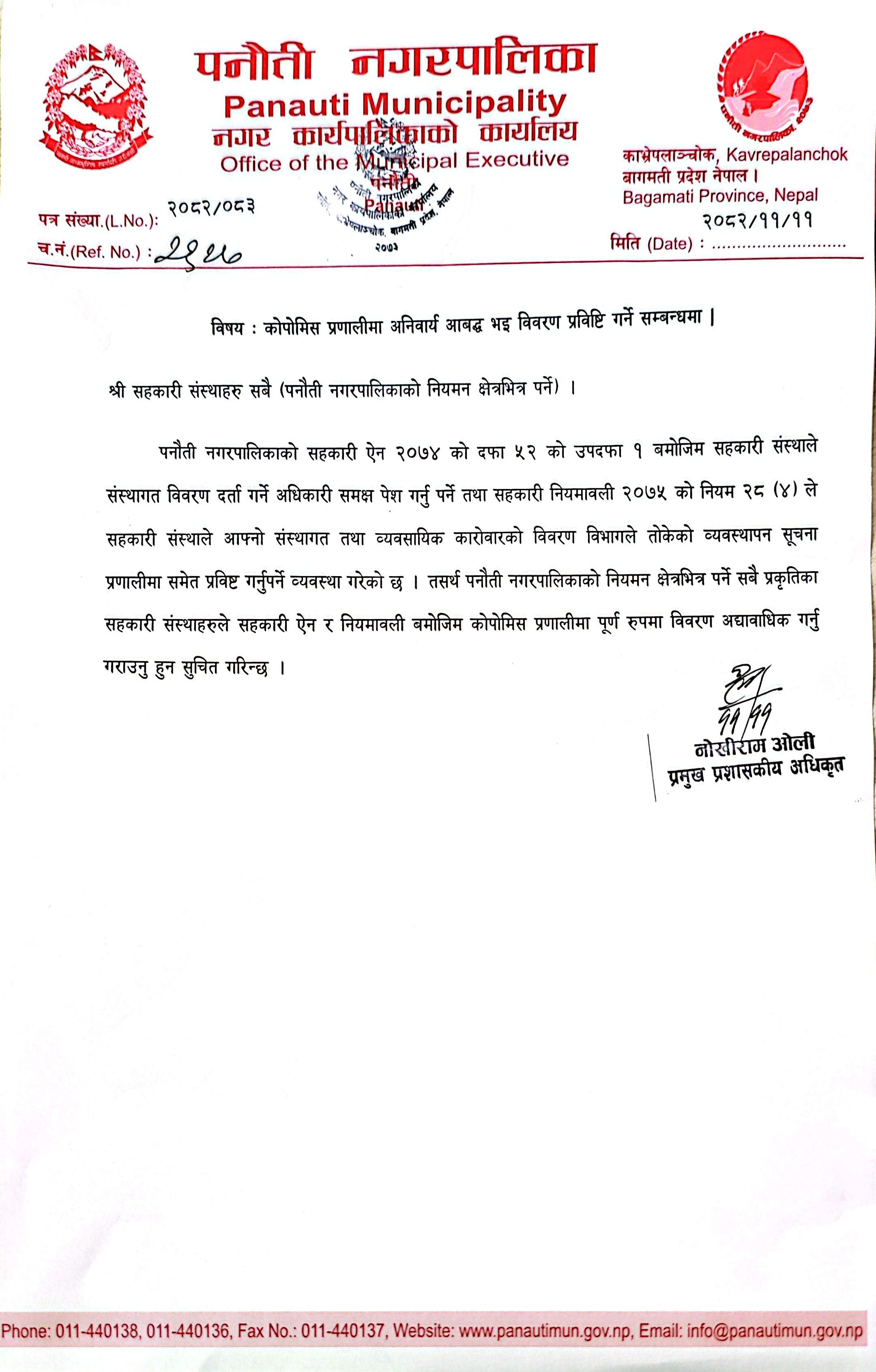 सहकारी संस्थाको दर्ता अभिलेखीकरण मापदण्ड, २०८२ बमोजिम विवरण प्रविष्टि गर्नें सम्बन्धि अत्यन्त जरुरि सूचना I