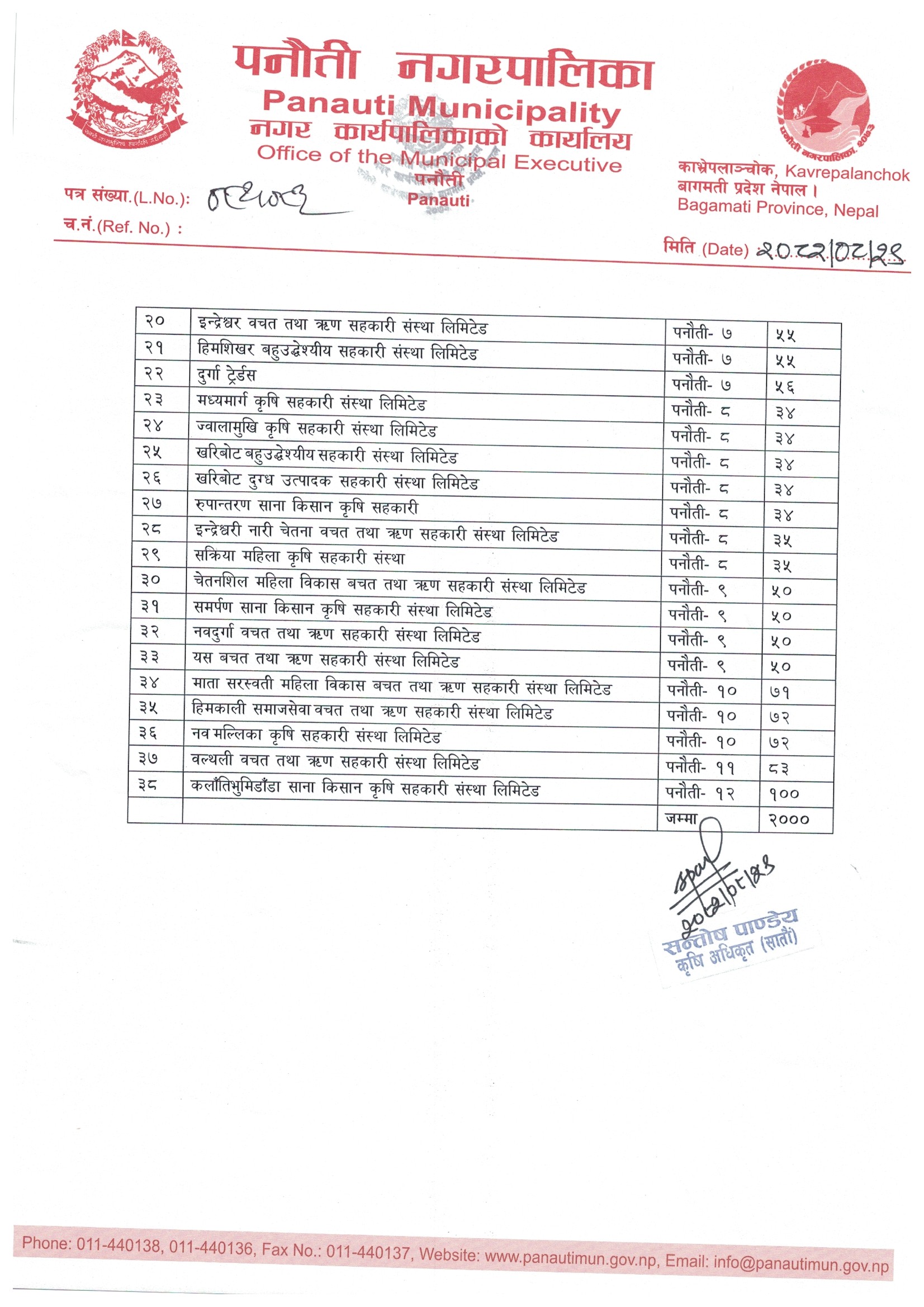 पनौती नगरपालिका ,नगरकार्यपालिकाको कार्यालय