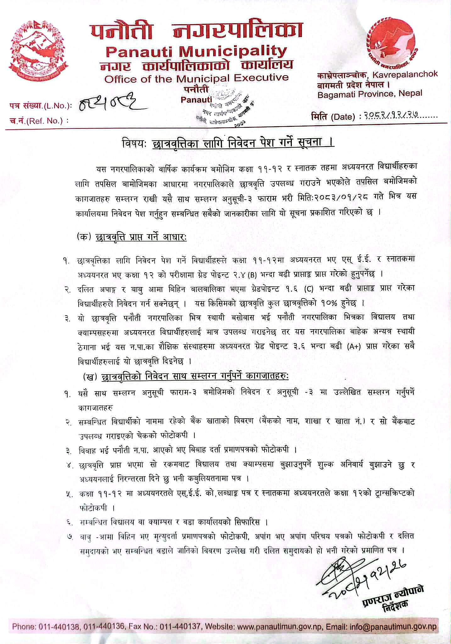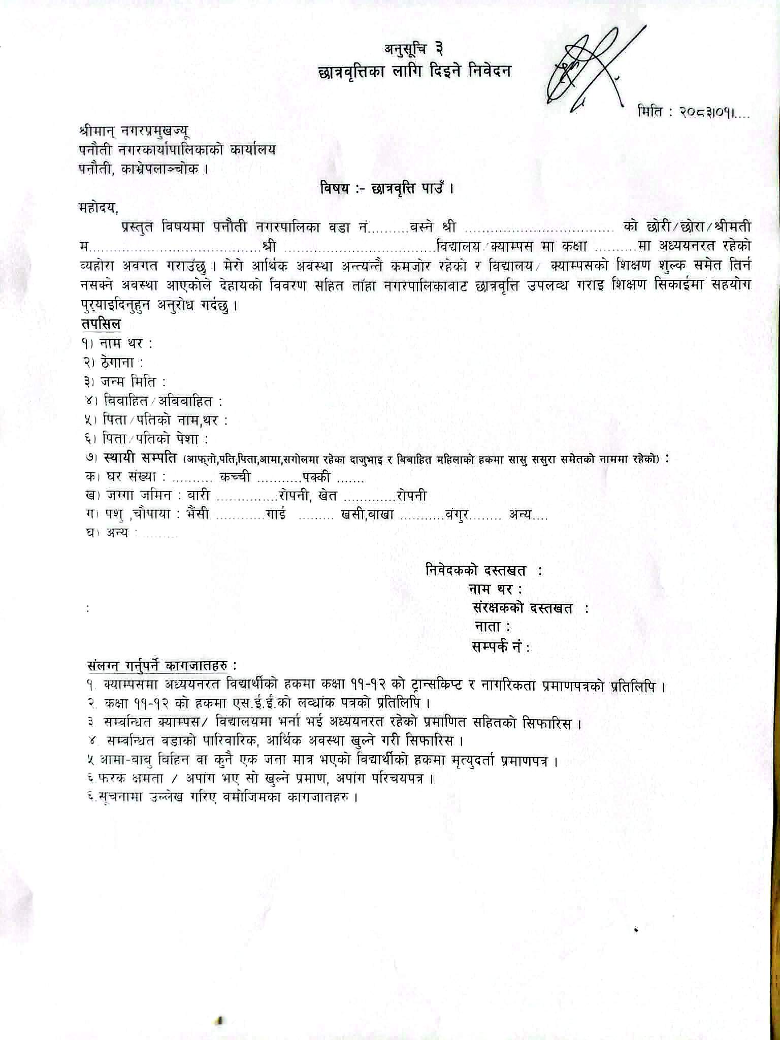 छात्रवृत्तिका लागि आवेदन पेश गर्ने सम्बन्धी सूचना