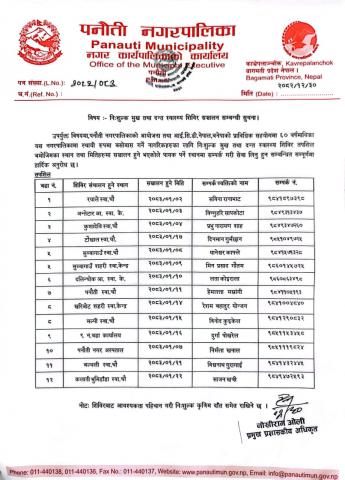जनस्वास्थ्य कार्यालयको स्वास्थ्य सहजकर्ता सेवा करारमा नियुक्तिको लागि उम्मेद्धार नतिजा/सिफारिस सम्बन्धी सूचना