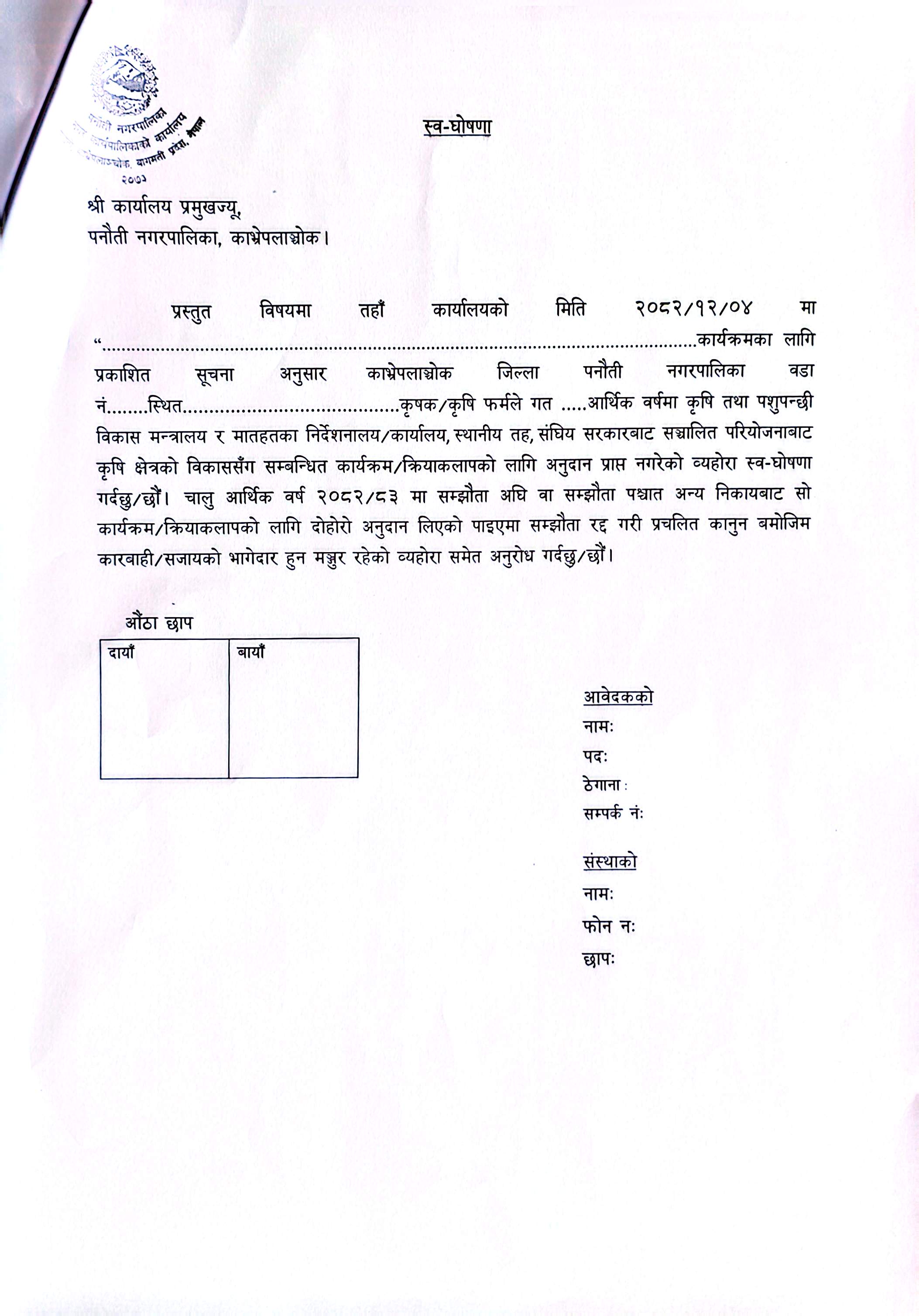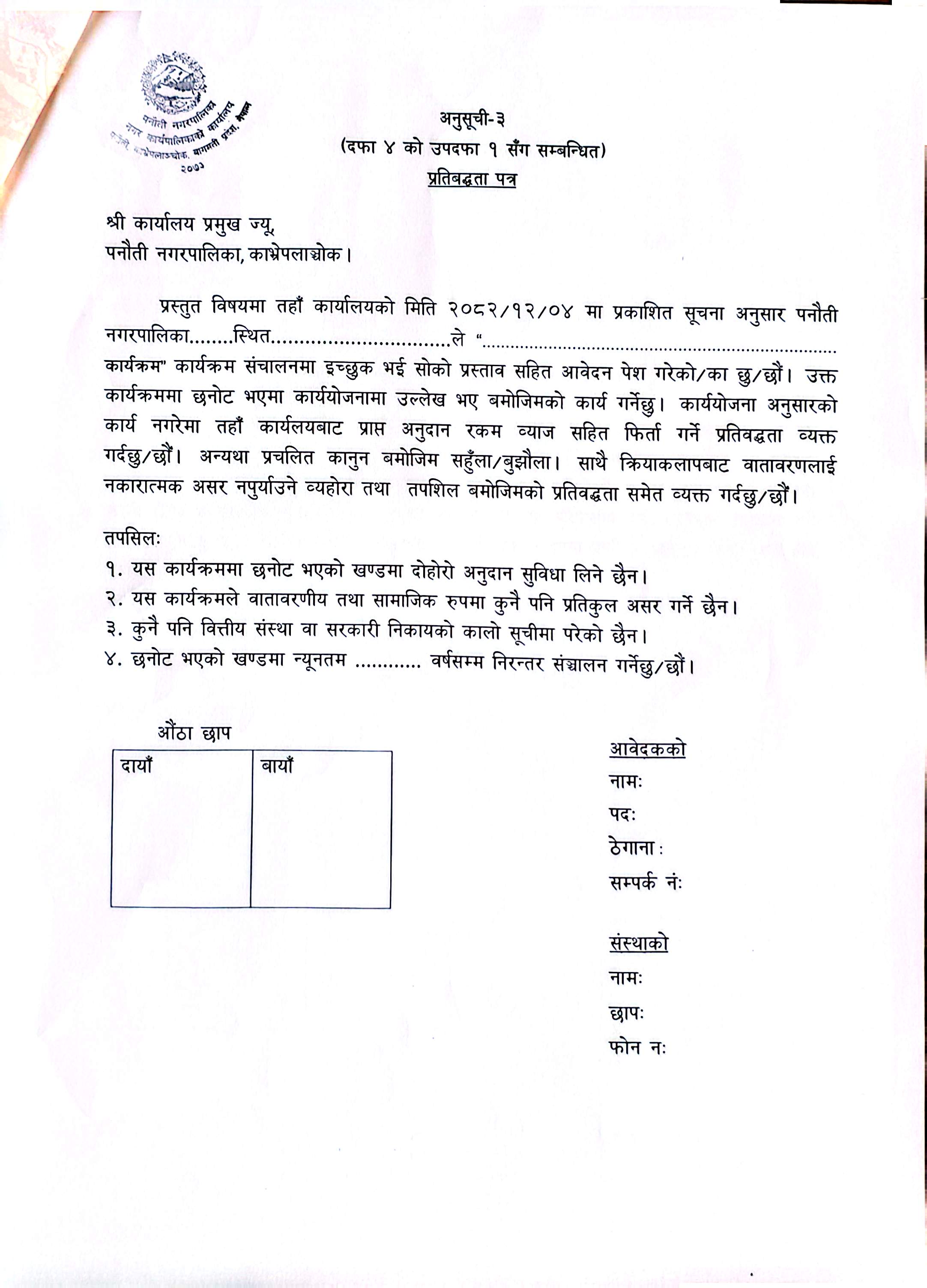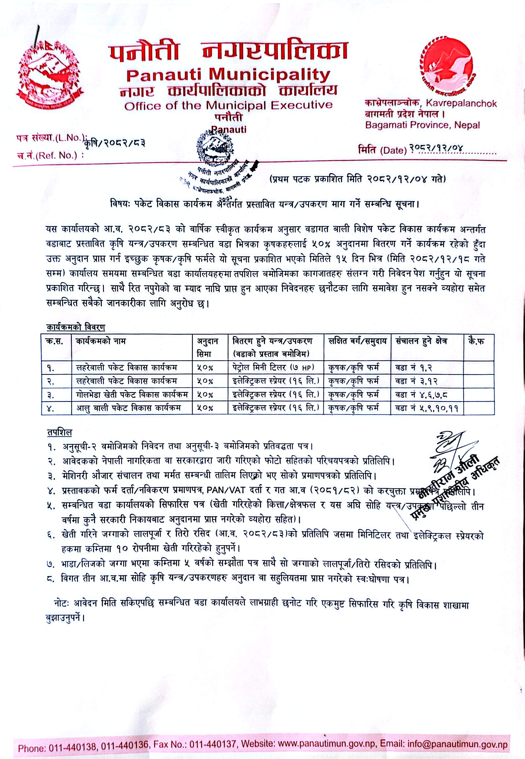 पकेट विकास कार्यक्रम अन्तर्गत प्रस्तावित यन्त्र/उपकरण माग गर्ने सम्बन्धि सूचना