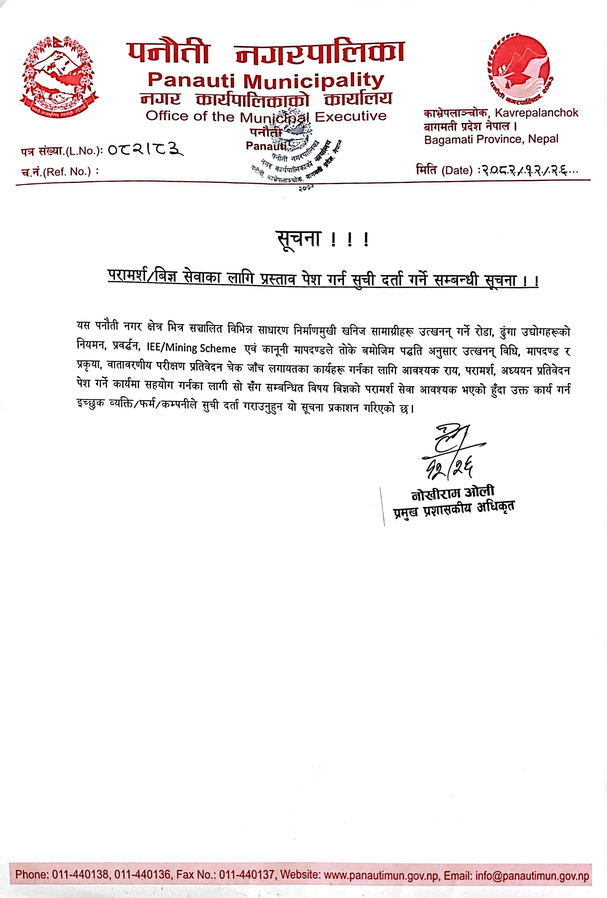 परामर्श/बिज्ञ सेवाका लागि प्रस्ताव पेश गर्न सुची दर्ता गर्ने सम्बन्धी सूचना