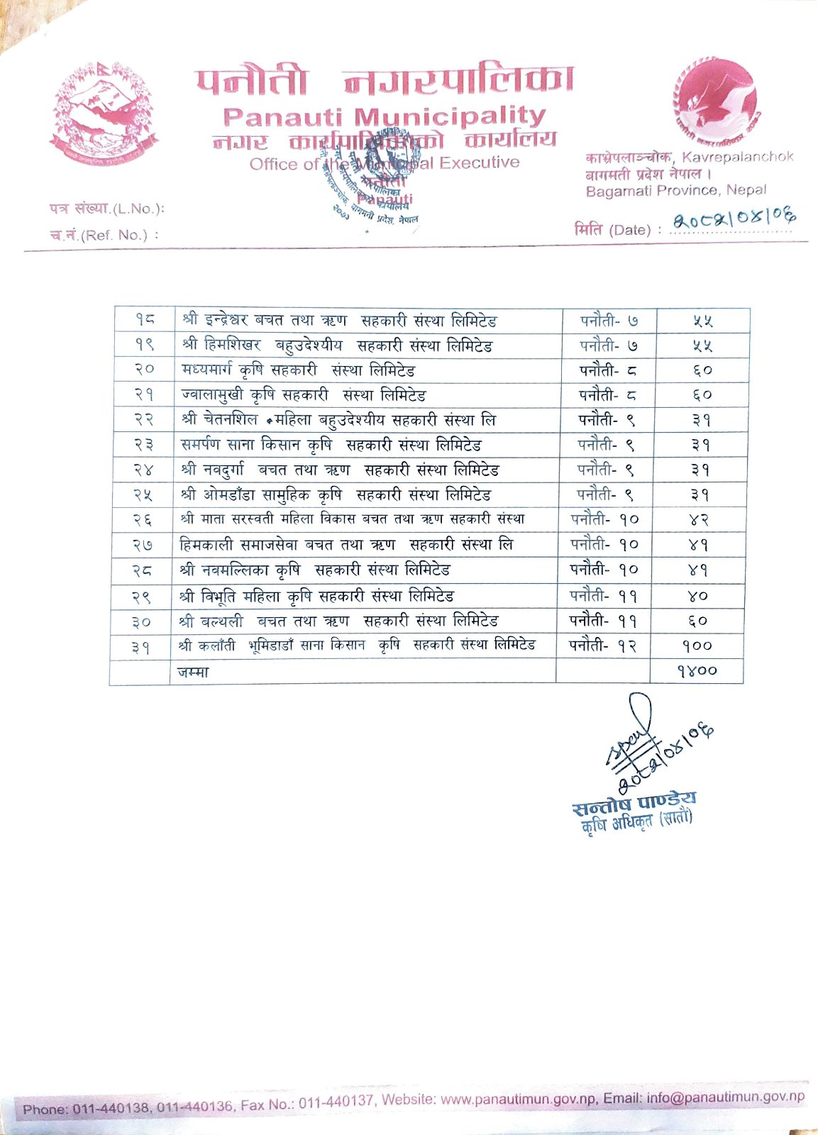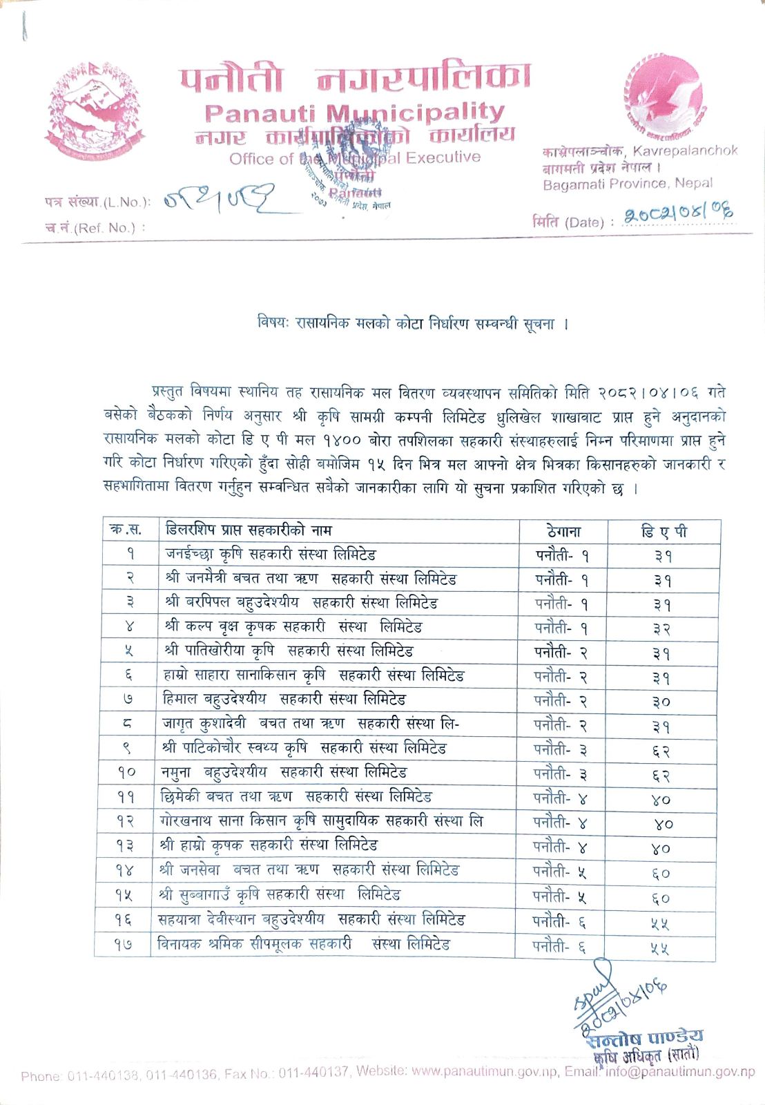 पनौती नगरपालिका ,नगरकार्यपालिकाको कार्यालय