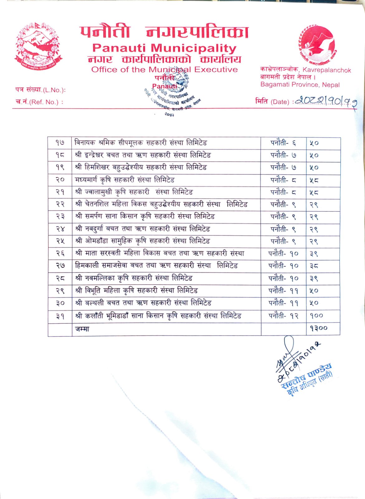 पनौती नगरपालिका ,नगरकार्यपालिकाको कार्यालय