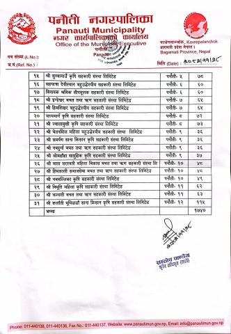 पनौती नगरपालिका ,नगरकार्यपालिकाको कार्यालय