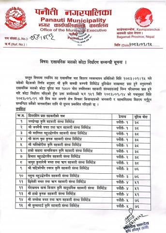 रासायनिक मलको कोटा निर्धारण सम्बन्धी सूचना