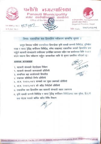 रासायनिक मल डिलरशिप नवीकरण सम्बन्धि सूचना ।