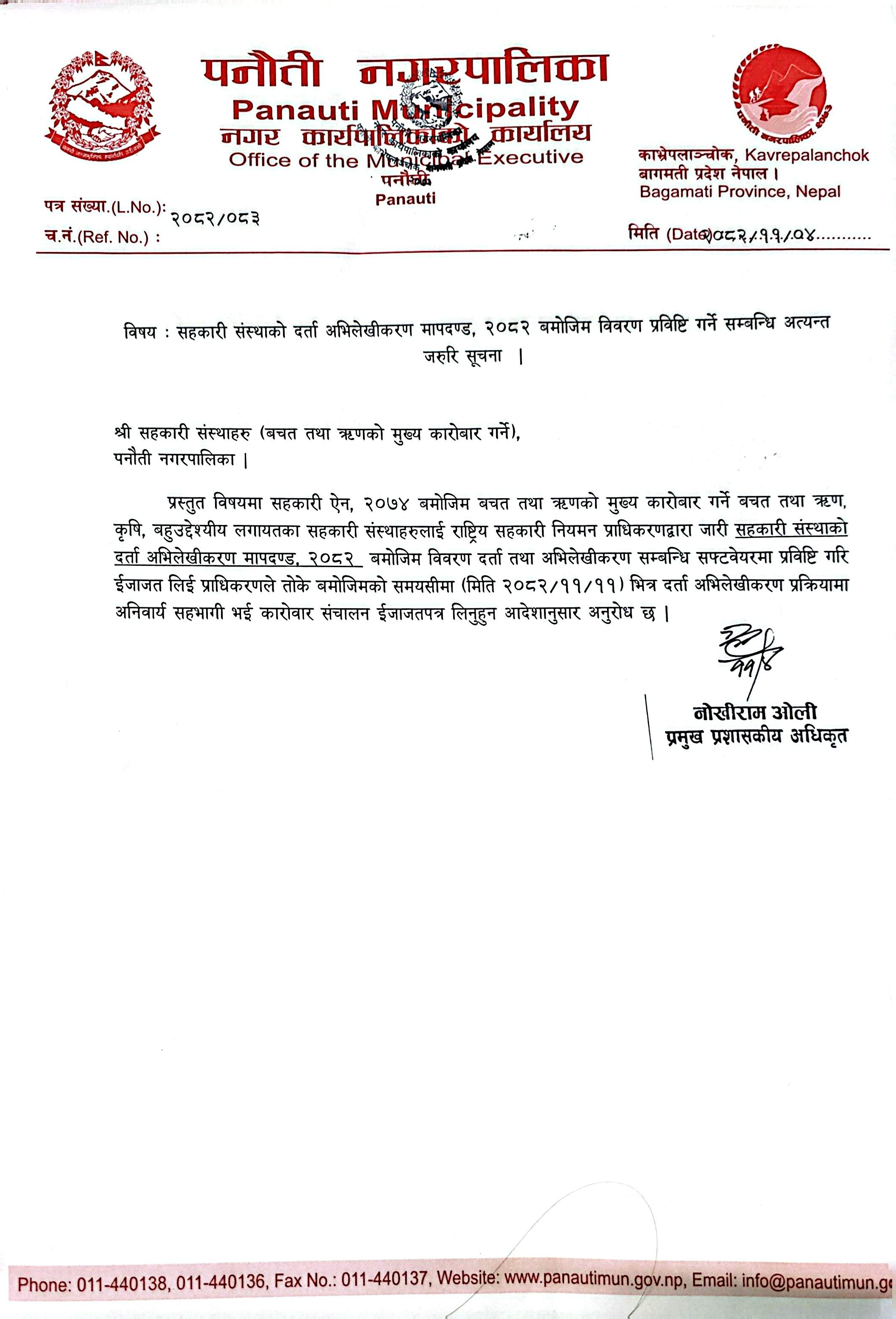 सहकारी संस्थाको दर्ता अभिलेखीकरण मापदण्ड, २०८२ बमोजिम विवरण प्रविष्टि गर्नें सम्बन्धि अत्यन्त जरुरि सूचना I