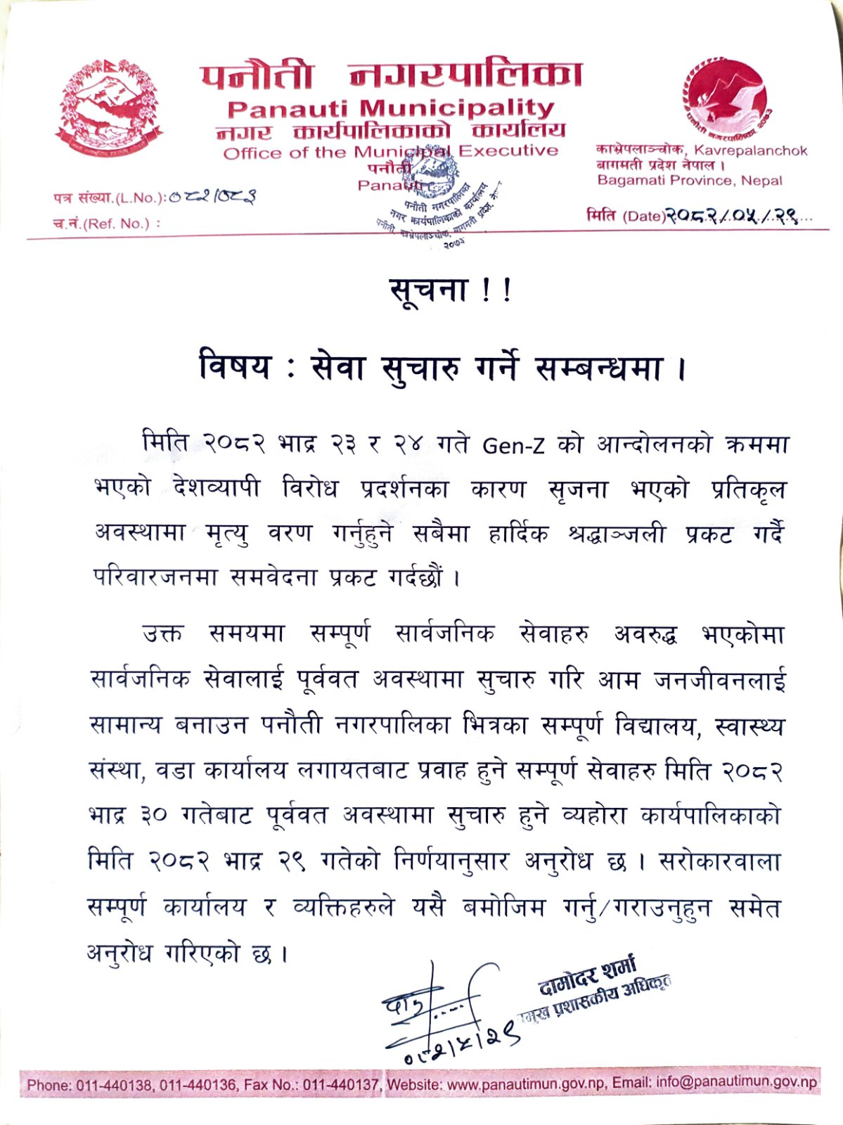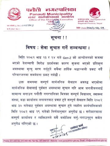 सेवा सुचारु गर्ने सम्बन्धी सूचना ।