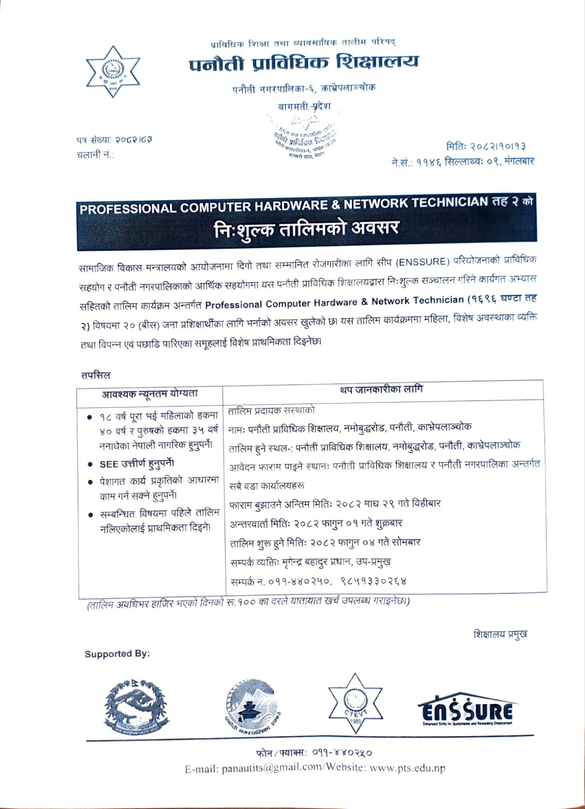 Professional Computer Hardware & Network Technician तह २ को नि:शुल्क तालिम